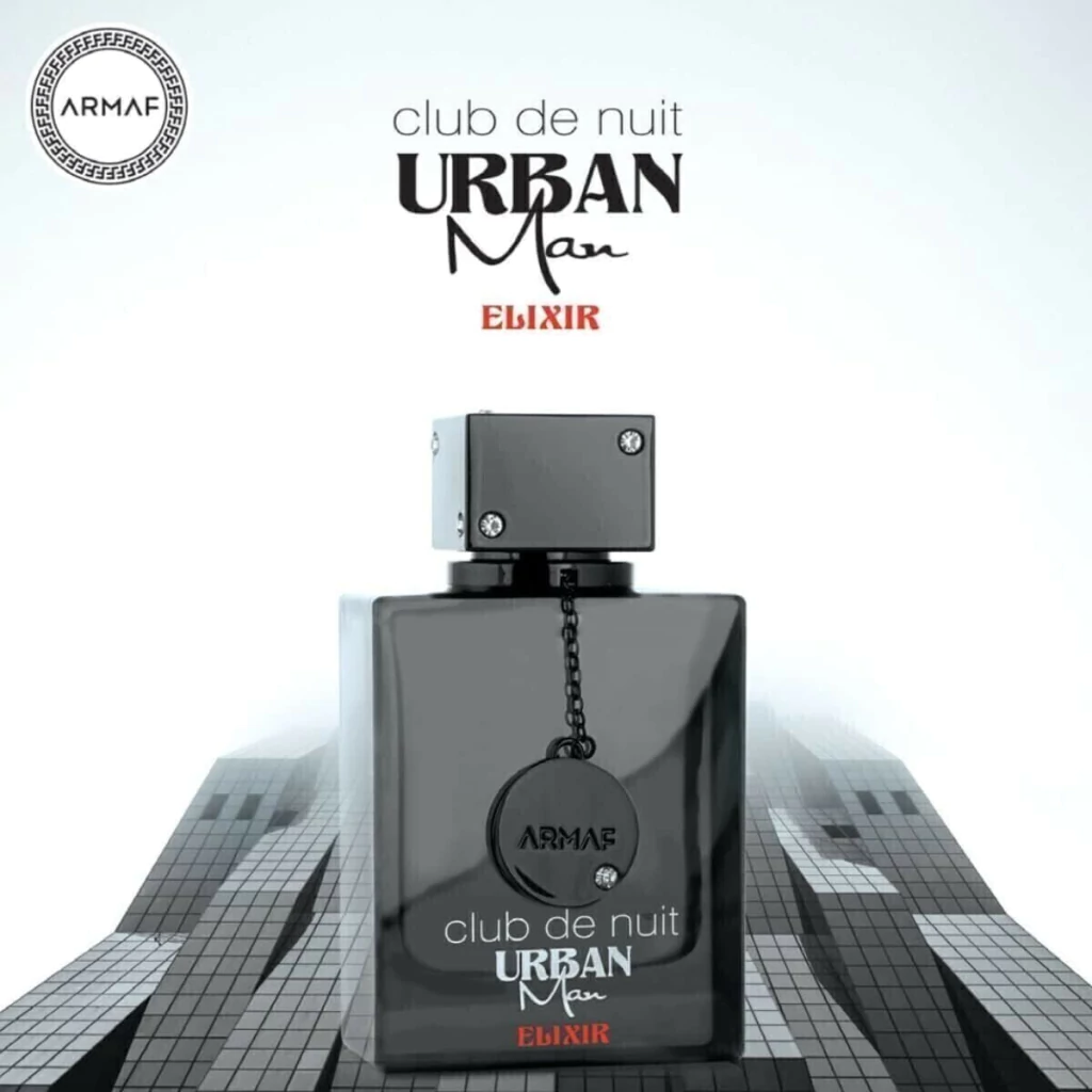 Club De Nuit Urban Elixir de Armaf é um perfume Masculino. Esta é uma nova fragrância. Club De Nuit Urban Elixir foi lançada em 2022. As notas de topo são: Bergamota, Pimenta Rosa, Jasmim e Flor de Laranjeira. As notas de coração são: Lavanda, Elemi, Gerânio, Açafrão, Vetiver e Tagetes. As notas de fundo são: Ambroxan, Âmbar, Patchouli, Cedro e Ládano.